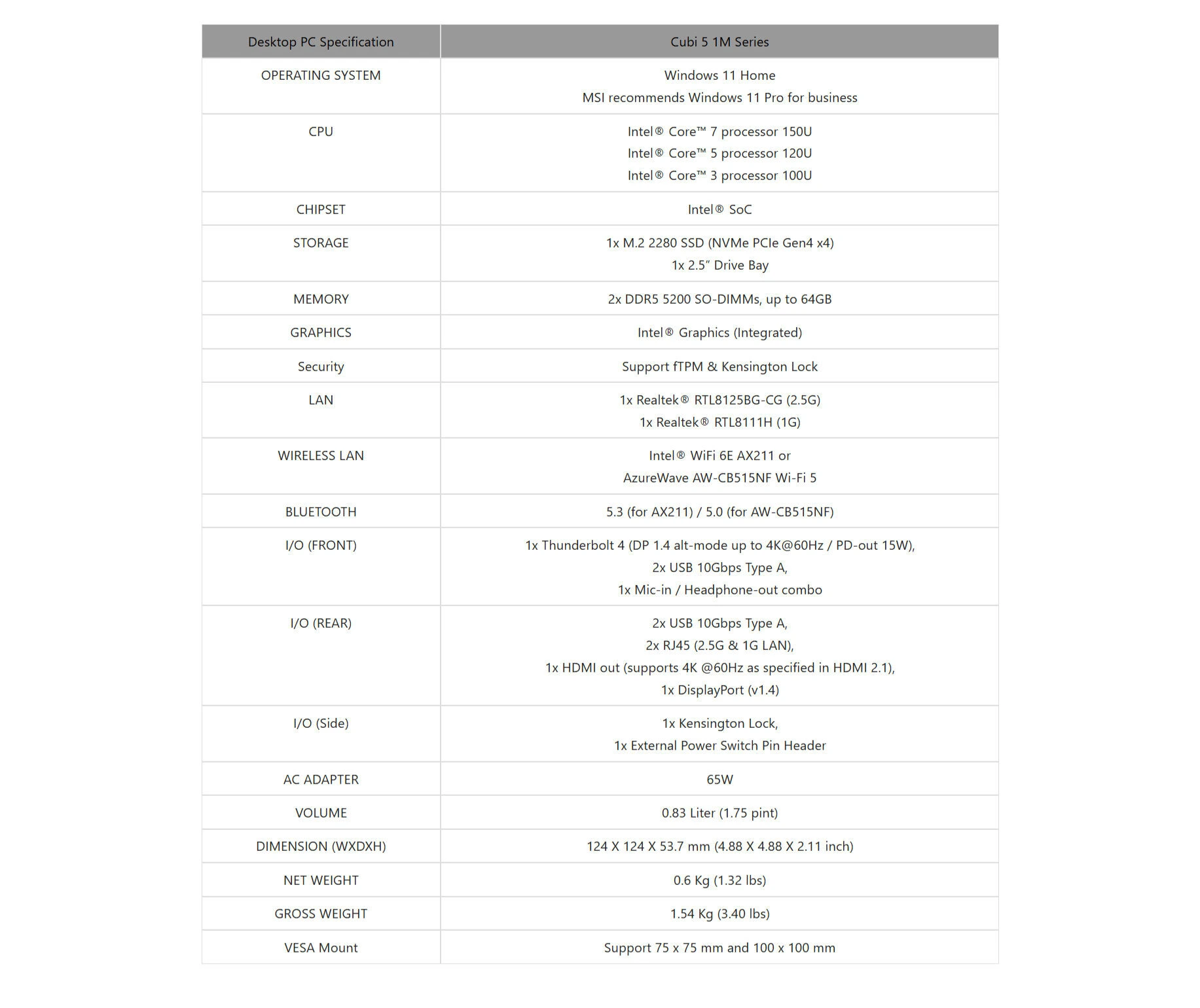 MSI представила новую модель мини-ПК серии Cubi 5 — компактный компьютер объёмом всего около 0,7 литра, рассчитанный на повышенную производительность и разнообразные сценарии использования.