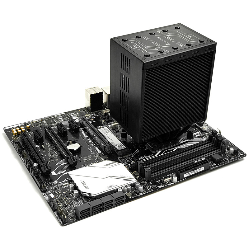 Дискретный 120-мм вентилятор имеет скорость вращения от 800 до 1600 RPM, при этом уровень шума составляет от 18 до 25 дБА. Кулер имеет размеры 125 × 88 × 165 мм и весит 860 г. Он поддерживает современные процессорные сокеты, включая AM4, AM3(+), FM (+) и LGA115x.