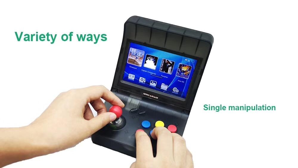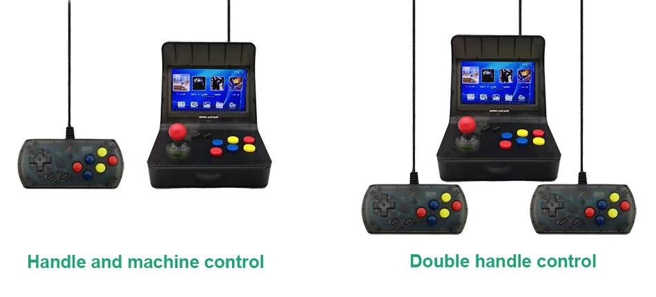 В отличие от SNK Neo Geo Mini, в Retro Mini Arcade есть аккумулятор ёмкостью 2200 мАч. 4,3-дюймовый дисплей имеет разрешение 480 × 272 пикселей, в наличии 128 ГБ оперативной памяти DDR2, накопитель 16 ГБ, кардридер microSD, видеовыход и 3,5-мм аудиоразъём. Система поставляется с двумя проводными геймпадами.