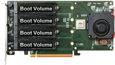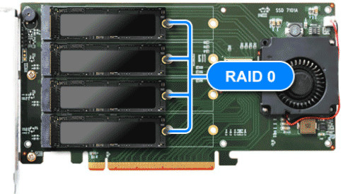 Карта подключается к слоту PCIe x16 и может задействовать до четырёх накопителей M.2 NVMe SSD, каждый из которых использует по четыре линии PCIe. Для взаимодействия использован чип коммутатор PCIe PEX 8747. Кастомная прошивка позволяет использовать RAID-массив в качестве загрузочного устройства.