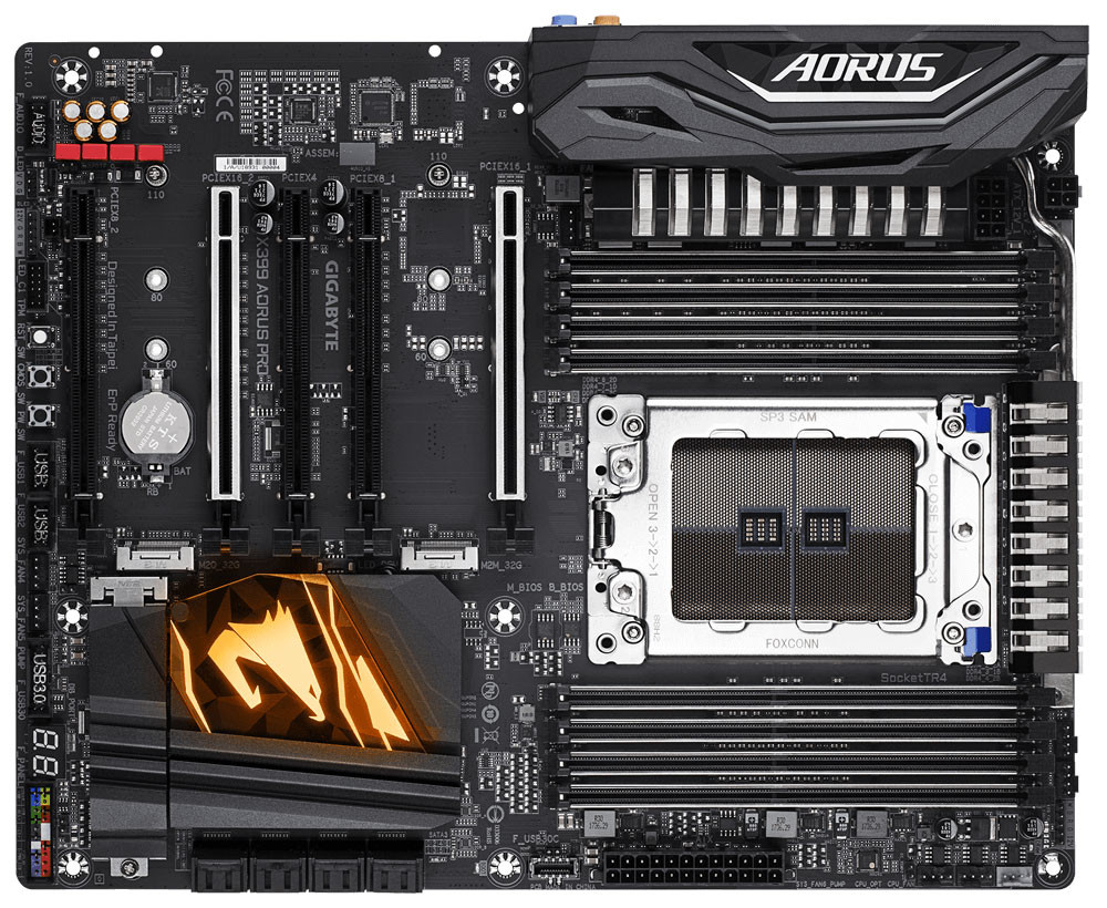В связи с выходом второго поколения процессоров Ryzen Threadripper, Gigabyte представила свою вторую материнскую плату оснащённую сокетом TR4 — X399 Aorus Pro.