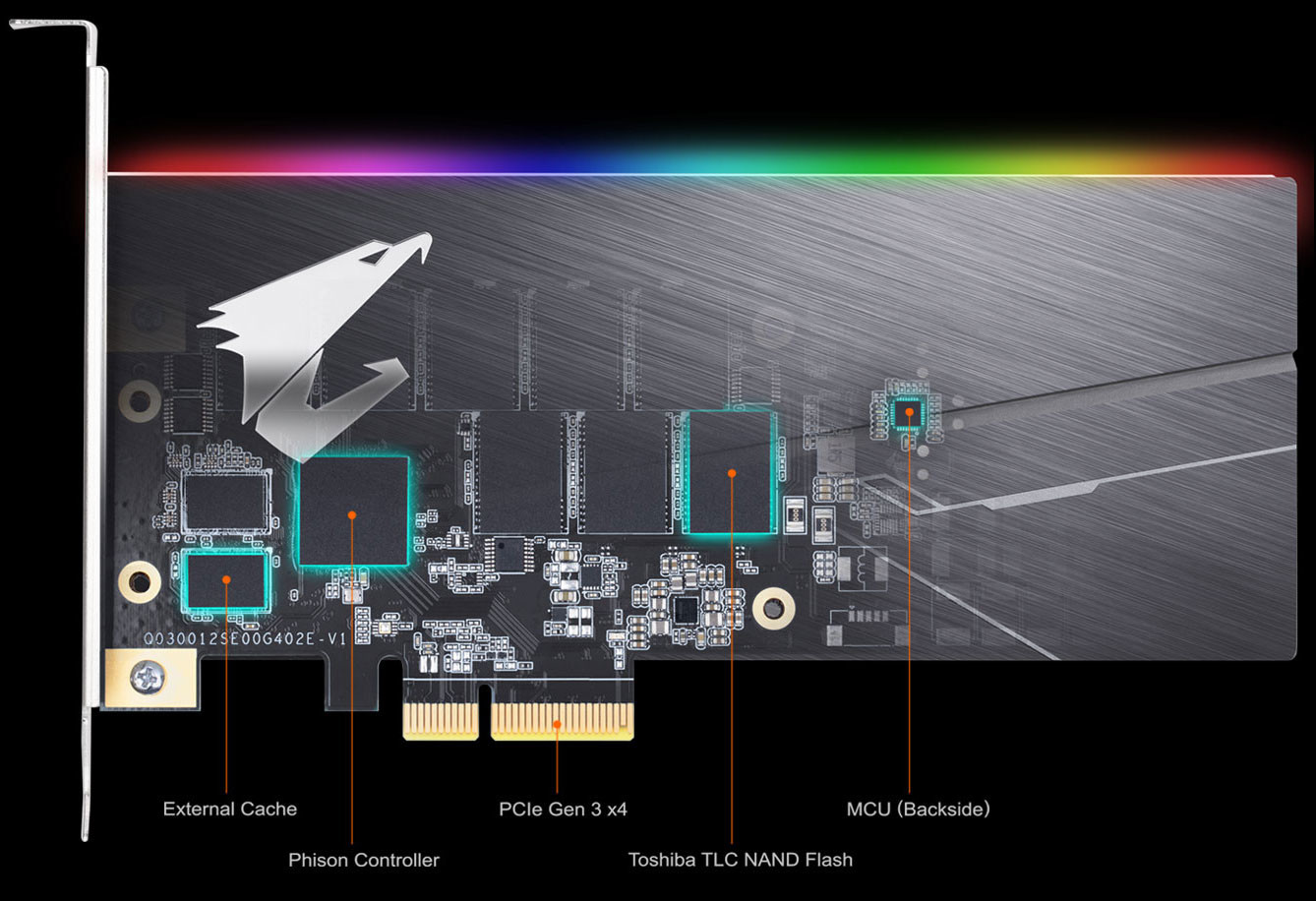 Gigabyte представила новый накопитель NVMe SSD под названием Aorus RGB AIC, который сделан в форм-факторе платы расширения для слота PCI-Express 3.0 x4. Накопитель оснащён контроллером Phison PS5012-E12 NVMe 1.3 и флеш-памятью Toshiba BiCS3 TLC NAND.
