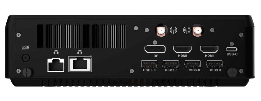 Среди портов есть Gigabit Ethernet, Killer 2.5 Гбит/с Ethernet, два USB 3.1 Gen2 Type-C, USB 3.1 Gen2 Type-A, четыре USB 3.0 Type-A, два HDMI 2.0b (3840 × 2160 @ 60 Гц), один DisplayPort 1.4 (4096 × 2160 @ 60 Гц) и кардридер.