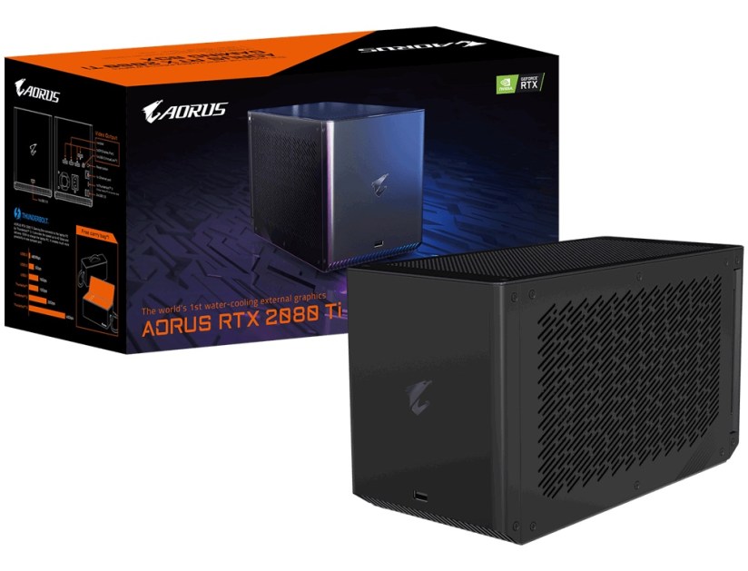 Gigabyte выпустила внешнюю графику AORUS Gaming Box, с видеокартой NVIDIA GeForce RTX 2080 Ti и водяным охлаждением. Дополнительный разгон отсутствует, а система охлаждения оснащена медной пластиной основания и двумя 120-мм вентиляторами.