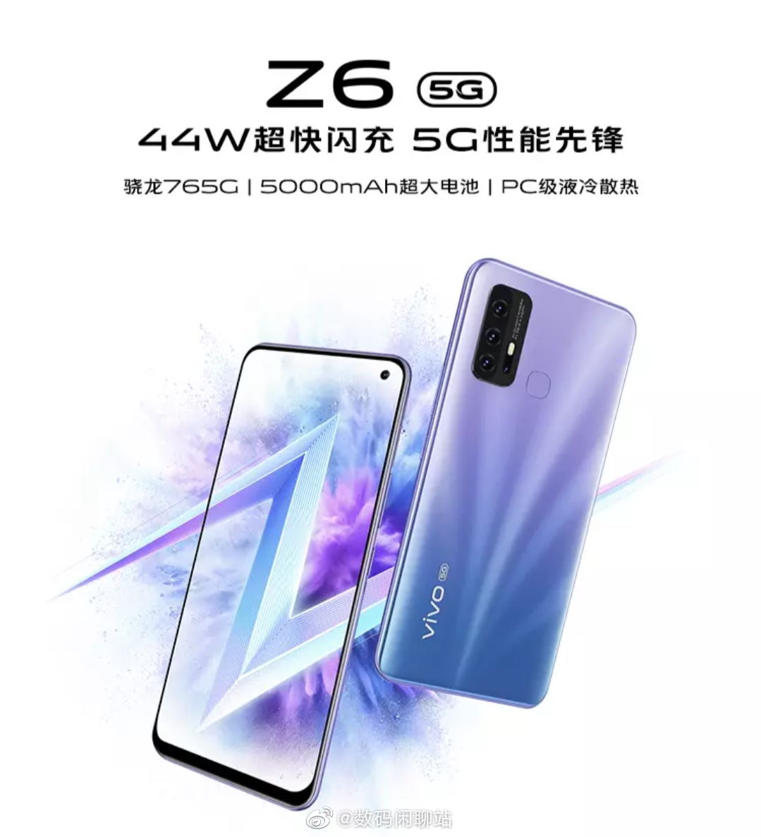 Vivo Z6 будет оснащён процессором Snapdragon 765G и жидкостной системой охлаждения. Присутствует поддержка сетей 5G в двух режимах и аккумулятор ёмкостью 5000 мАч (с зарядкой 44 Вт).