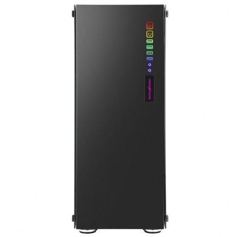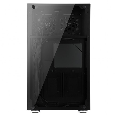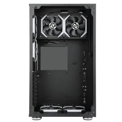 Для накопителей доступно три 3,5-дюймовых отсека в верхней части корпуса и два 2,5-дюймовых крепления за панелью на которую крепится материнская плата. С корпусом поставляется шесть 120-мм вентиляторов Abkoncore Spider Spectrum, имеющие RGB-подсветку с управлением через пульт. Разноцветная подсветка также украшает порты на передней панели. Среди них есть четыре USB 3.1 type-A, аудиоразъёмы и кнопки питания/сброса.